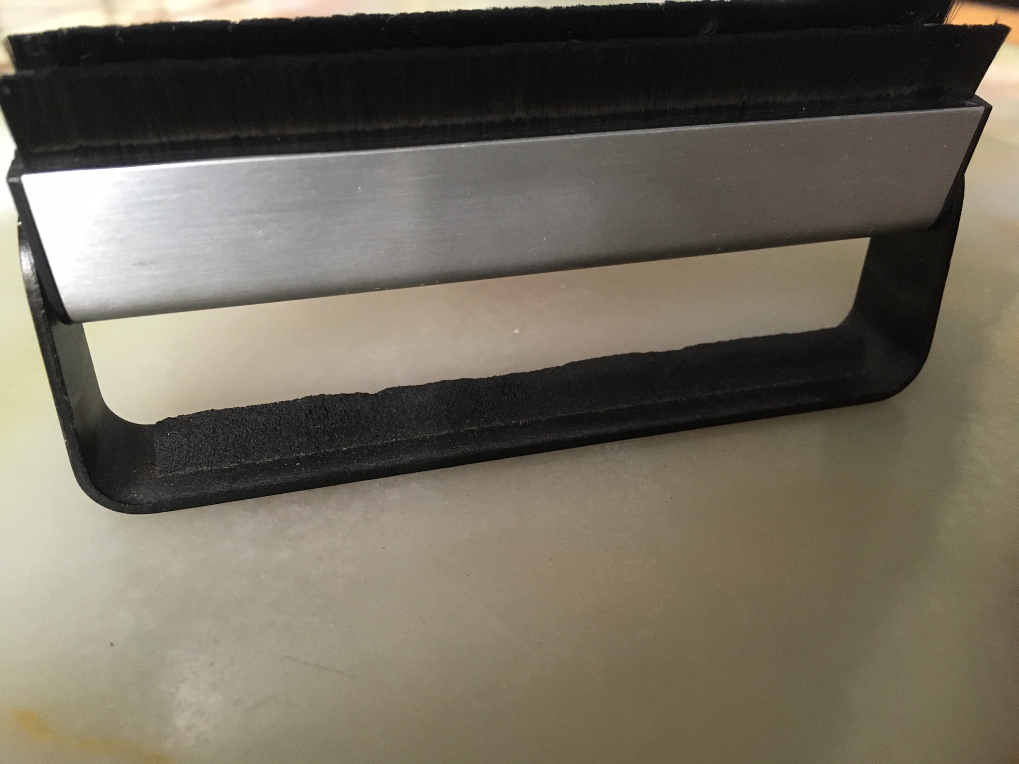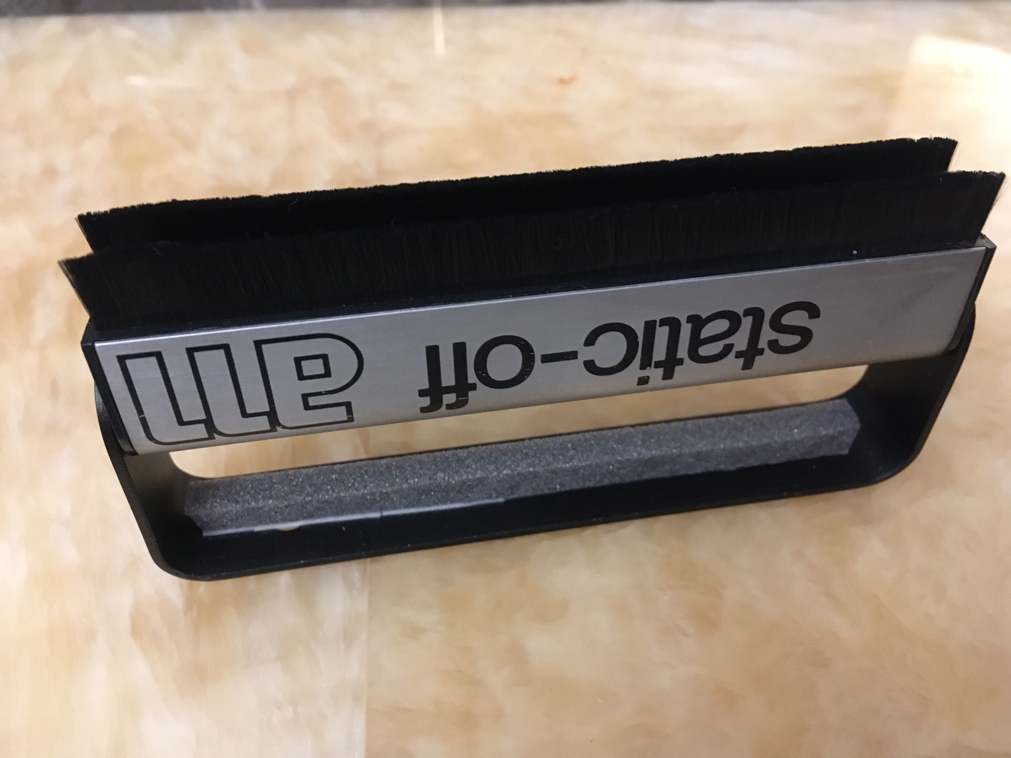 제품은 덴마크제 AM 카본솔인데 알루미늄 재질로 이것을 손으로 잡아 정전기가 방지된다고 하는 그런 것이었다. 사용을 해 보니 정말로 골을 따라 밖으로 닫으면 먼지들이 솔에 달라붙어 떨어진다. 아주 편했다.