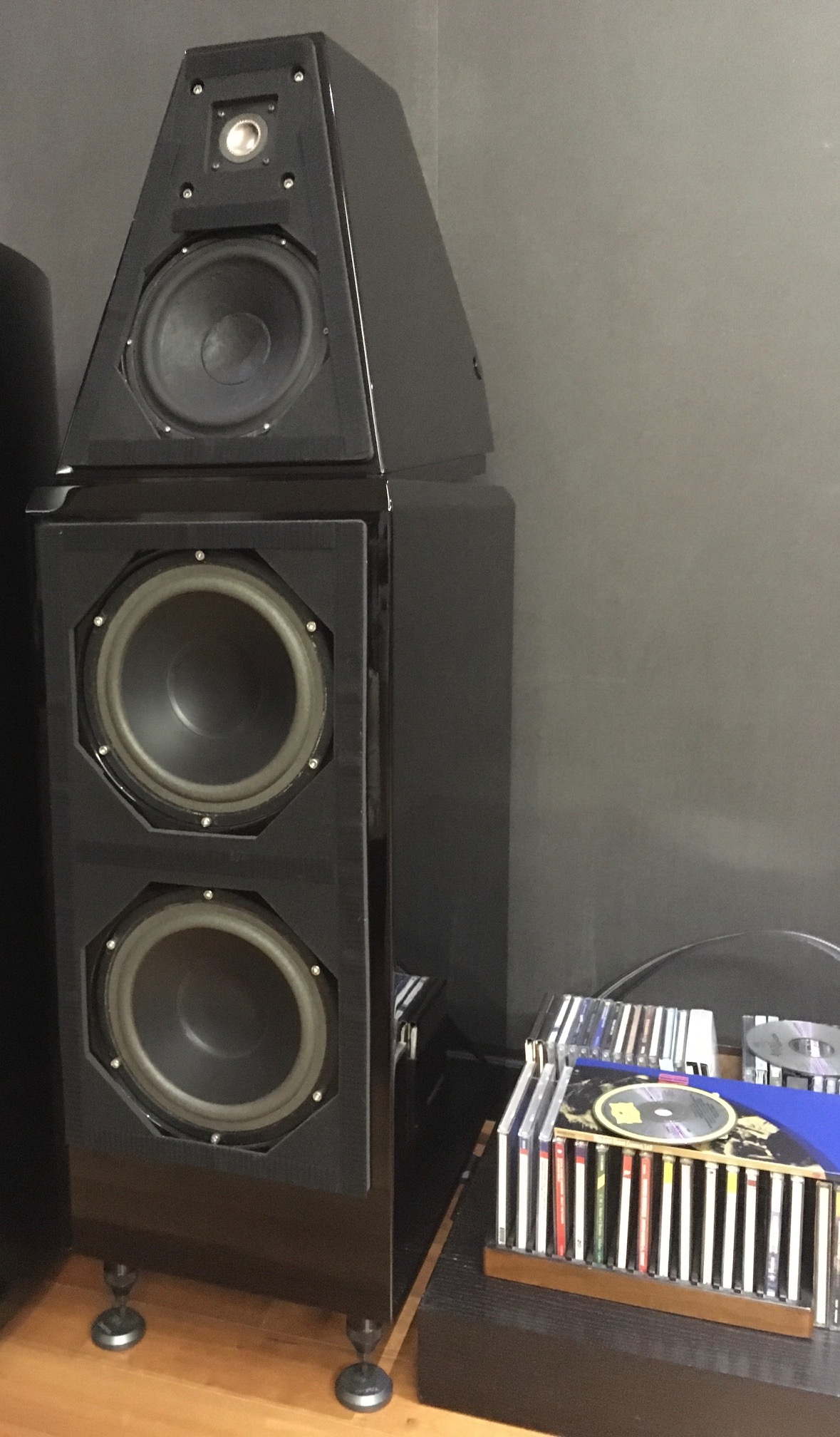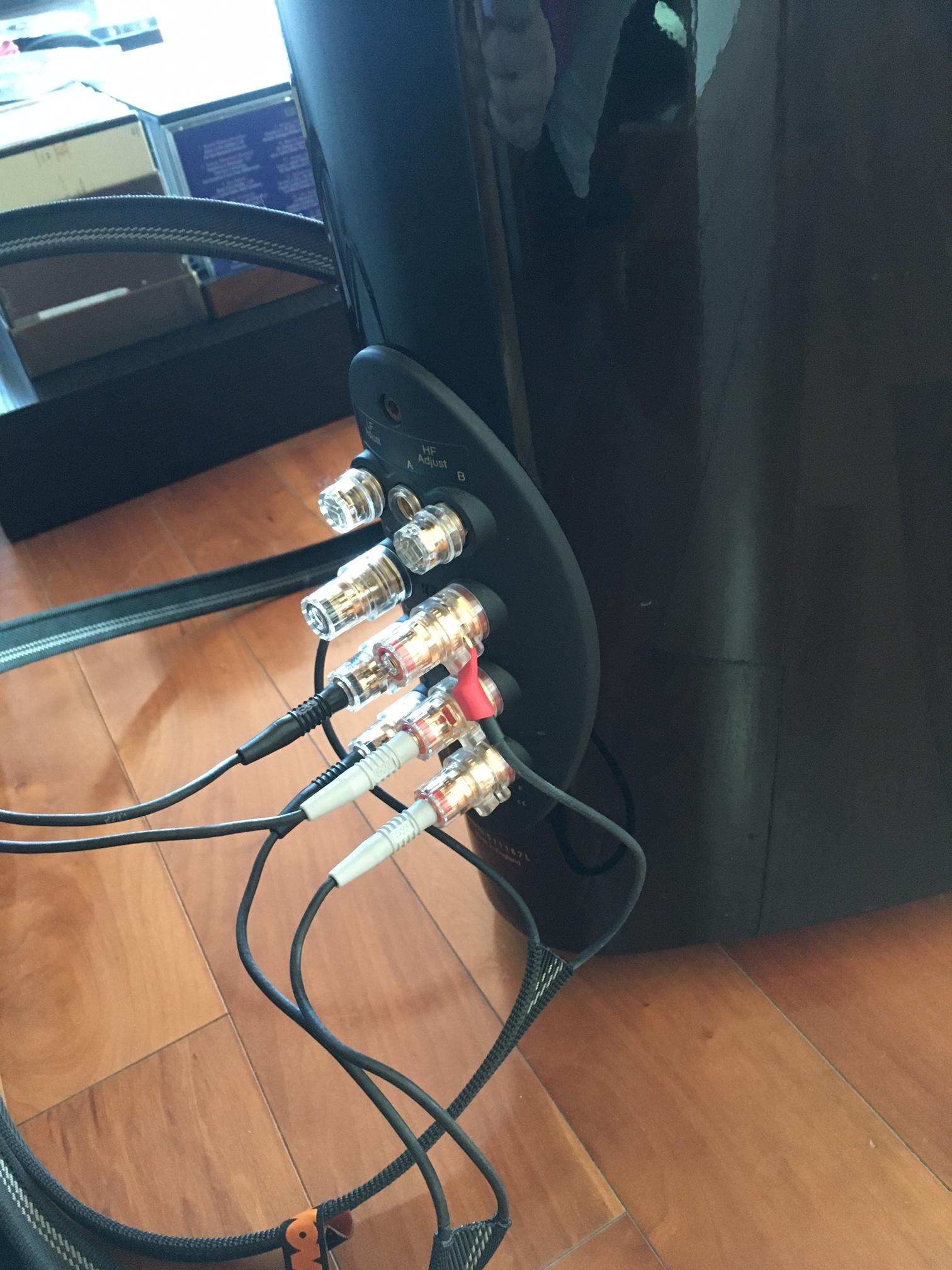 그리고 이 기종은 바이와이어링이 아닌 트리와이어링이다. 그래서 보복스 보칼리즈 스피커 케이블로 트리와이어링을 권했고 그는 스피커 케이블 세 조를 물려 쓰고 있다. 물론 소리는 당연히 좋다. 백만 원대 점퍼를 쓰는 것보다 그 값으로 바이와이어링을 하는 것이 훨씬 낫다. 그도 바이와이어링과 점퍼를 처음에는 썼지만 다시 트리와이어링으로 연결하고는 크게 만족하고 있다.