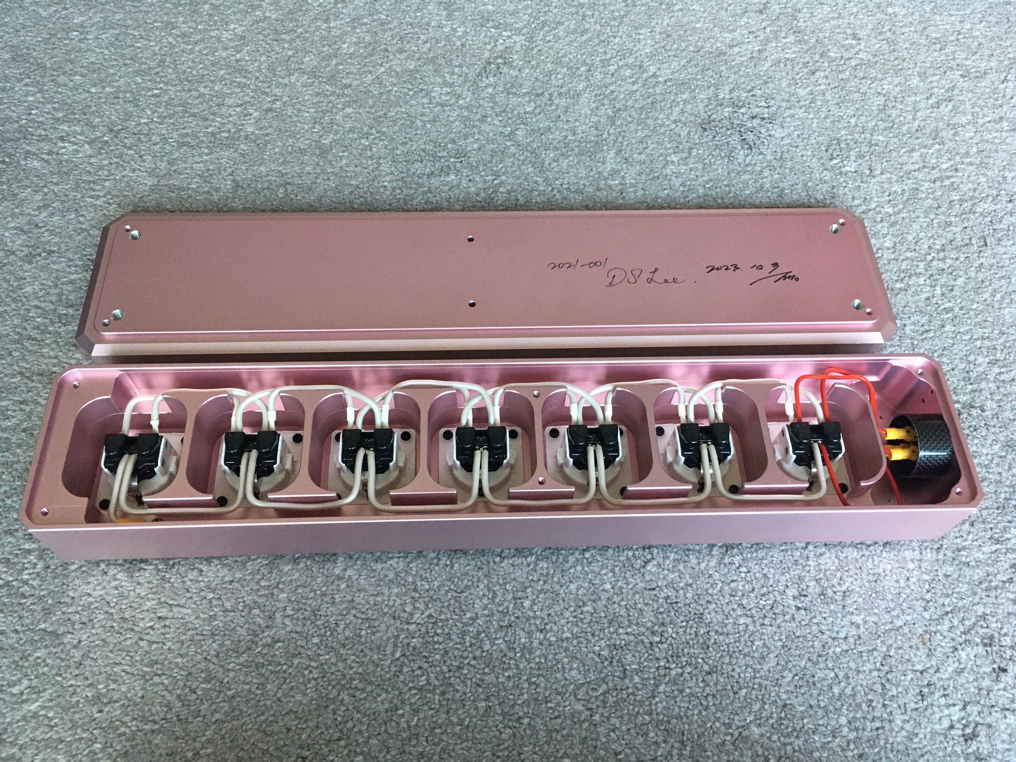 이 제품은 원래 시청용으로 제작된 제1호기(Ser.001)입니다. 월간 오디오에 사용된 바로 그 제품으로 분홍색으로 단 한 대 제작되었습니다. 하지만 여러 매체를 통해 시청용으로 사용되다 보니 다소의 흠집이 발생하였고 그래서 이를 정상가로 팔기보다는 튜닝을 하여 파격 할인하여 판매하게 되었습니다. 음질은 앞서 설명드린 대로 한층 더 업그레이드된 스페셜 에디션이라 하겠습니다. 웅장함과 고급스런 음색 그리고 선명한 음질을 자랑합니다. 최고의 멀티탭으로도 결코 손색이 없습니다.