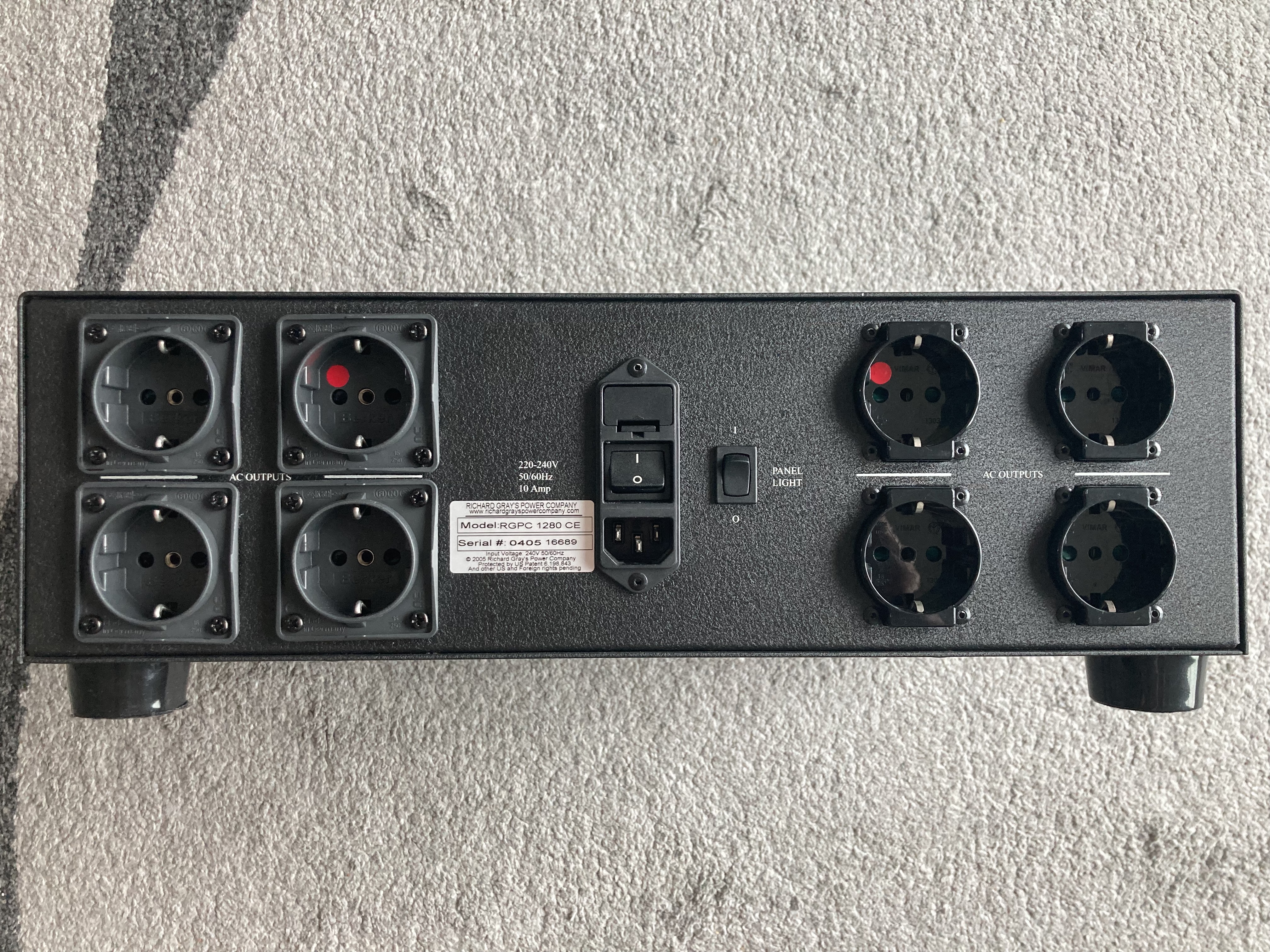 그리고 제품명의 1280이란 숫자가 의미하는 것이 궁금한데 정확한 것을 알 수 없고 다만 최대 전력량을 뜻하는 것으로 추정된다. 인렛의 용량이 10A라서 전원 220V에 쓰면 P=EI 즉 10X220=2200W가 되는데 두 계통이라 나누면 1100W가 나와 쓸 수 있는 소비전력으로 추정된다. 신형은 숫자가 1200으로 바뀌었는데 230V에 쓰면 2300의 반인 1150이 나와 1200에 근사치가 된다. 물론 아무리 소비전력이 큰 앰프와 다른 기기를 물려도 현실적으로 2200W를 넘어가는 일은 거의 없다.