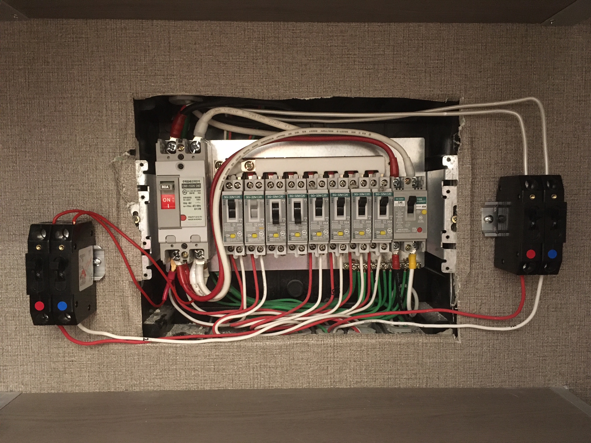 4. LG 차단기 + 벽체 콘센트 + 단결정 배선 + 출장비 = 50만 원